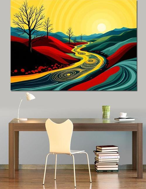 Tablomega Soyut Renkli Yol Dekoratif Kanvas - Mdf Ahşap Tablo