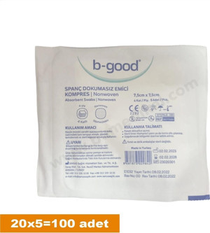 7,5x7,5 cm Steril Spanç Gaz Kompres Nonwoven (5x20) -100 adet - Kutusuzdur