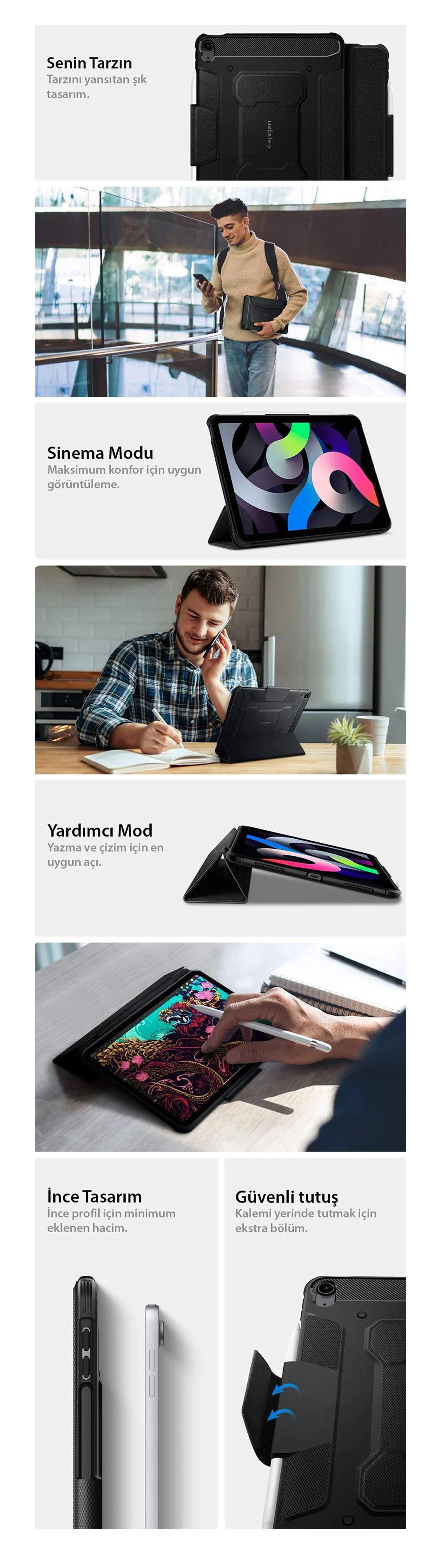 Spigen iPad Air 11" M3 (2025) / M2 (2024) / Air 10.9" (2022 / 2020) ile Uyumlu Kılıf Rugged Armor Pro Black - ACS02054