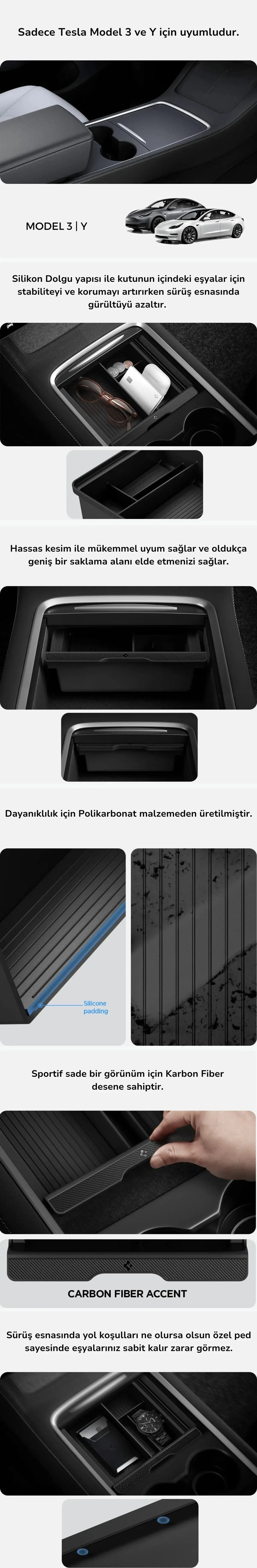 ● Tesla Model 3 ve Y'ye mükemmel şekilde uyacak şekilde tasarlanmıştır.