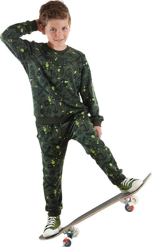 2 parça erkek çocuk eşofman takım. Kalın kışlık, pamuklu kumaştan üretilmiştir. Alt ve üst grafiti desen metraj baskılıdır. 2 yan ceplidir. Beli hem lastik hem de kordon detaylıdır. Tüm MSHB&G ürünleri çocuk güvenliği düşünülerek üretilmiştir ve iğne dedektörlerinden geçirilmiştir.