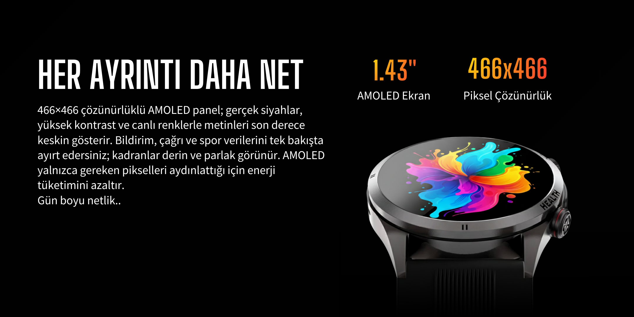 Ekran Ölçüsü 1.43-inç AMOLED yüksek dosyalar 466*466