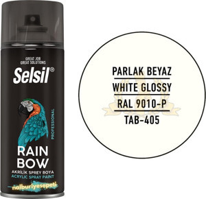 Selsil Rainbow Akrilik Sprey Boya PARLAK BEYAZ 400 ml. - RAL9010