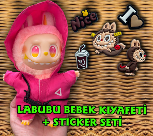 Plankton Tasarım Squid Game Labubu Kıyafeti ve Aksesuar - Sticker Seti Hediye (Bebek dahil değildir)