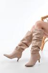 Morotonom SR-2001 Bej Süet İnce Topuklu Günlük Bayan Çizme