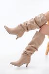 YSN-4422 Bej Topuklu Kadın Çizme - Image 1