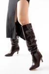 Morotonom SR-2001 Kahverengi Kroko İnce Topuklu Günlük Bayan Çizme