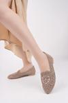 6101 Taba Süet Fiyonklu Günlük Kadın Babet - Image 1