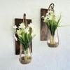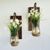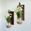 Duvar Dekoru, Led Işıklı, Beyaz Nergis Çiçekli, Ceviz Aplik İkili Set