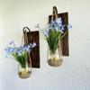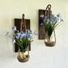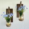 Duvar Dekoru, Led Işıklı, Mavi Nergis Çiçekli, Ceviz Aplik İkili Set