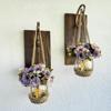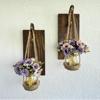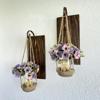 Duvar Dekoru, Led Işıklı, Pastel Lila Papatya Çiçekli, Ceviz Aplik İkili Set