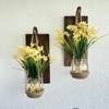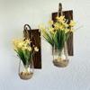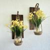 Duvar Dekoru, Led Işıklı, Sarı Nergis Çiçekli, Ceviz Aplik İkili Set