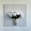 Kabartma Dokulu, Beyaz Gül Çiçekli 3D Tablo