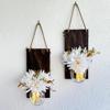 Led Işıklı, Beyaz Yıldız Çiçekli Duvar Dekoru Ceviz İkili Set