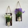 Led Işıklı, Lila ve Beyaz Nergis Çiçekli Duvar Dekoru Ceviz İkili Set