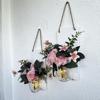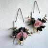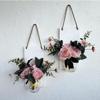 Led Işıklı, Pudra Pembe Gül Çiçekli Duvar Dekoru Beyaz İkili Set