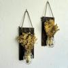 Led Işıklı, Sarı Cipso Çiçekli Duvar Dekoru Ceviz İkili Set
