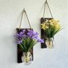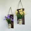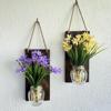 Led Işıklı, Sarı ve Lila Nergis Çiçekli Duvar Dekoru Ceviz İkili Set