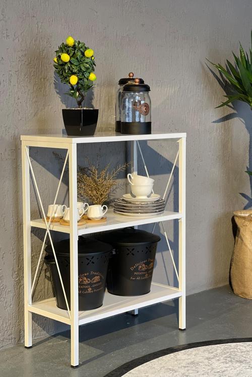 • Ürün ölçüleri: Yükseklik:83cm Genişlik:60cm Derinlik:30cm Ayak Yüksekliği:15cm Raf Araları:31 cm Raf Genişliği:56cm