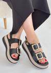 Ayakmod 19-200 Siyah Kadın Dolgu Topuk Sandalet - Image 1