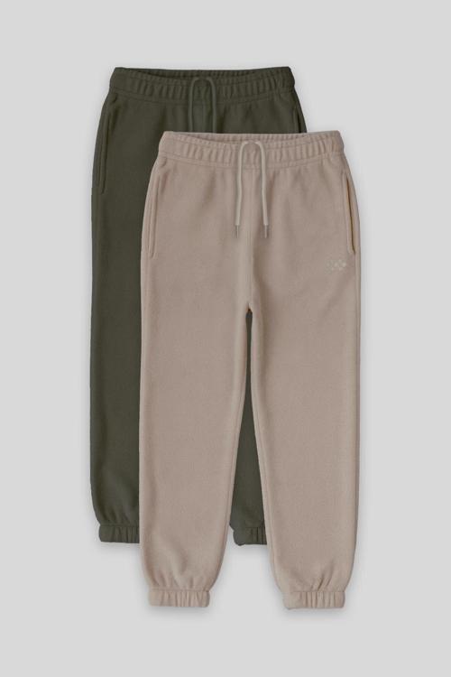 Standart Fit 2li Paket Haki-Koyu Bej Kız Çocuk Eşofman Alt - 75155