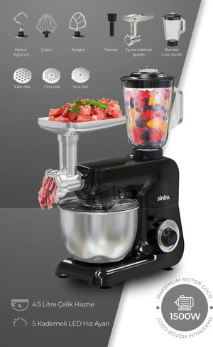 Sinbo  SMX-2775 Çok Amaçlı Mutfak Şefi ( Hamur - Kıyma - Blender Makinesi )