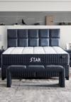 - Özel Yüzey ve Bordür Kumaşı: Star Yatak'ın yüzeyi, özel dokuma saten kumaş ile kaplanmıştır. Bu yumuşak ve lüks dokunuş, cildinize rahatlık sunar. Yatak bordürü ise kare desenli antrasit keten kumaştan yapılmıştır, bu da yatağa modern ve estetik bir görünüm kazandırır.
