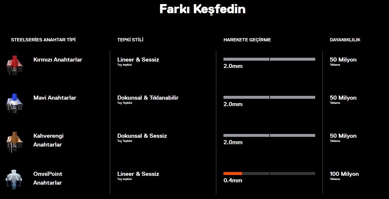 Aşırı hızlı ya da istediğiniz tuş tipi seçeneği ile 50 milyon tıklama garantisi verir. kırmızı, mavi ya da kahverengi