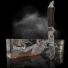 Ele tam oturacak şekilde dizayn edilmiş sap kısmının ucu kartal başı şeklinde oymalı. Kahverengi sap kısmının üst tarafı ise metal kaplı ve işlemeli. Sterling avcı bıçağının paslanmaz çelikten keskin yüzü avcı ve av köpeği desenli.
