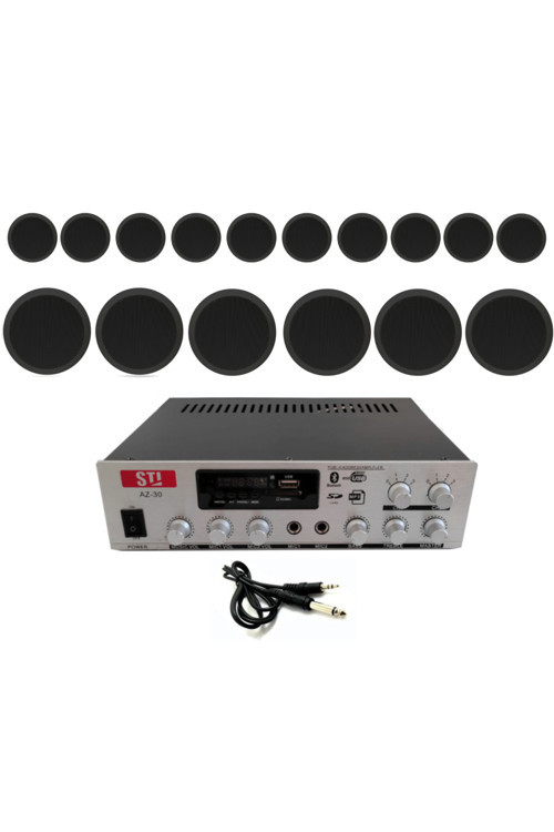 Stı 16’Lı Siyah Tavan Hoparlörlü Ses Sistemi Paketi | 100V Anfi Uyumlu-Mağaza,Kafe,Okul, Avm Seslendirme