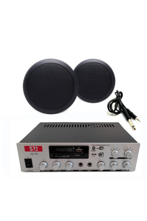 Stı 2’Li Siyah Tavan Hoparlörlü Ses Sistemi Paketi | Anons – Müzik – Ofis – Mağaza – Cami Uyumlu