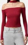 Stil Kadın Carmen Yaka Choker Detaylı Fitted Vücuda Oturan Fitilli Bluz Crop Örme Slim Kalıp Feminen ve zarif detaylarla tasarlanmış bu kadın bluzu, her kadının gardırobunda bulunması gereken kurtarıcı parçalardan biri.