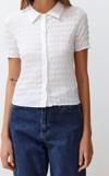 Desen:Düz Yaka Tipi:Polo Yaka Materyal:Polyester Karışımlı Kol Tipi:Standart Kol Kalıp:Slim Kumaş Tipi:Örme Renk:Beyaz Cep:Cepsiz Ürün Detayı:Düğmeli Ürün Tipi:Düz Kalınlık:Orta Astar Durumu:Astarsız Boy:Crop Koleksiyon:Basic Kol Boyu:Kısa Ortam:Casual/Günlük Siluet:Basic Dokuma Tipi:Dokulu Ek Özellik:Ek Özellik Mevcut Değil Persona:Cool & Comfort Kemer/Kuşak Durumu:Kemersiz Baskı/Nakış Tekniği:Baskısız Kapama Şekli:Düğmeli Sürdürülebilirlik Detayı:Hayır Materyal Bileşeni:97% Polyester, ,3% Elastan Yıkama Talimatı:T10 Paket İçeriği:Tekli Yaş:Tüm Yaş Grupları Model Bilgisi: Modelin Ölçüleri: Boy: 178cm(510) Göğüs 82cm(32in) Bel: 61cm(24in) Kalça: 91cm(35in).