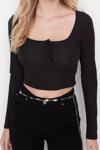 Stil Kadın Düğme Detaylı Fitted Vücuda Oturan Fitilli Esnek Bluz Crop Örme Slim Kalıp Feminen ve zarif detaylarla tasarlanmış bu kadın bluzu, her kadının gardırobunda bulunması gereken kurtarıcı parçalardan biri.