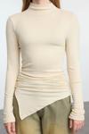 Stil Kadın Fitted Büzgü Drape Detaylı Bluz Crop Örme Slim Kalıp Feminen ve zarif detaylarla tasarlanmış bu kadın bluzu, her kadının gardırobunda bulunması gereken kurtarıcı parçalardan biri.