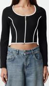 Stil Kadın Kontrast Biye Detaylı Fitted Vücuda Oturan Esnek Bluz Standart Örme Regular Kalıp Feminen ve zarif detaylarla tasarlanmış bu kadın bluzu, her kadının gardırobunda bulunması gereken kurtarıcı parçalardan biri.