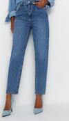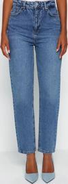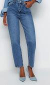Stil Kadın Moda Denim Kot Pantolon Regular Dar Paça Mavi Yüksek Bel Mom Jeans