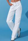 Stil Kadın Moda Denim Kot Pantolon Regular Geniş Paça Beyaz Yüksek Bel Jeans