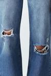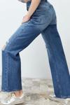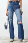 Stil Kadın Moda Denim Kot Pantolon Regular Geniş Paça Mavi Yırtıklı Yüksek Bel Jeans
