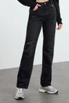 Stil Kadın Moda Denim Kot Pantolon Uzun Geniş Paça Antrasit Yırtıklı Yüksek Bel Uzun Jeans