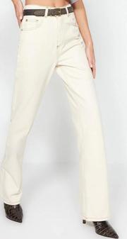 Stil Kadın Moda Denim Kot Pantolon Uzun Geniş Paça Ekru Yüksek Bel Jeans