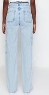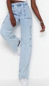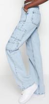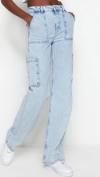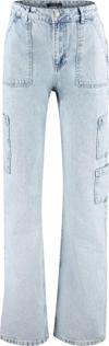 Stil Kadın Moda Denim Kot Pantolon Uzun Geniş Paça Kargo Cepli Yüksek Bel Jeans