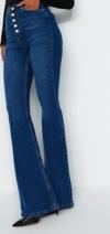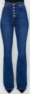 Stil Kadın Moda Denim Kot Pantolon Uzun Geniş Paça Önden Düğmeli Yüksek Bel Jeans