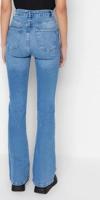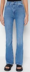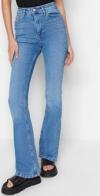 Stil Kadın Moda Denim Kot Pantolon Uzun İspanyol Paça Yüksek Bel Jeans