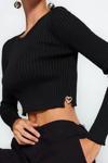 Stil Modern Kadın Crop Standart Kol Bisiklet Yaka Kalp Aksesuarlı Triko Kazak Rahat ve stil sahibi bir görünüm sunan bu kadın kazak, gardırobunuzun favori parçası olmaya aday! Esnek yapısı ve hafif kumaşı sayesinde gün boyu hareket özgürlüğü sağlar.