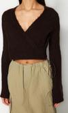 Stil Modern Kadın Crop Standart Kol Kruvaze Yumuşak Dokulu Triko Kazak Rahat ve stil sahibi bir görünüm sunan bu kadın kazak, gardırobunuzun favori parçası olmaya aday! Esnek yapısı ve hafif kumaşı sayesinde gün boyu hareket özgürlüğü sağlar.