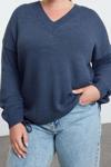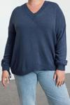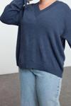 Ersefa Stil Modern Kadın Regular Büzgülü/Fırfırlı Kol V Yaka Büyük Beden Kolları Büzgü Detaylı Triko Kazak