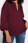 Stil Modern Kadın Regular Düşük Kol Polo Yaka Büyük Beden Fermuar Detaylı Triko Kazak Rahat ve stil sahibi bir görünüm sunan bu kadın kazak, gardırobunuzun favori parçası olmaya aday! Esnek yapısı ve hafif kumaşı sayesinde gün boyu hareket özgürlüğü sağlar.