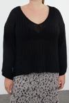 Stil Modern Kadın Regular Düşük Kol V Yaka Büyük Beden Fitilli Triko Kazak Rahat ve stil sahibi bir görünüm sunan bu kadın kazak, gardırobunuzun favori parçası olmaya aday! Esnek yapısı ve hafif kumaşı sayesinde gün boyu hareket özgürlüğü sağlar.