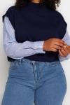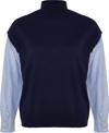 Ersefa Stil Modern Kadın Regular Standart Kol Dik Yaka Büyük Beden Kolları Çizgili Dokuma Mixli Triko Kazak